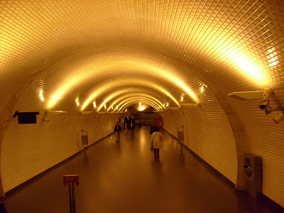 This station allows access to the Baixa and the Chiado, and is one of the most crowded of the city. The architectural project was the work of architect Álvaro Siza Vieira and of plastic painter Angelo de Sousa. Due to locate the approximately 45 meters from the surface, the station Baixa/Chiado is the most profound of the entire network of Metro in Lisbon. The signs are related to Islamic art, but retains as much as possible characteristics of simplicity and restraint of means to be used: white tiles and, in some areas of the walls and ceiling, a gilded inscriptions.